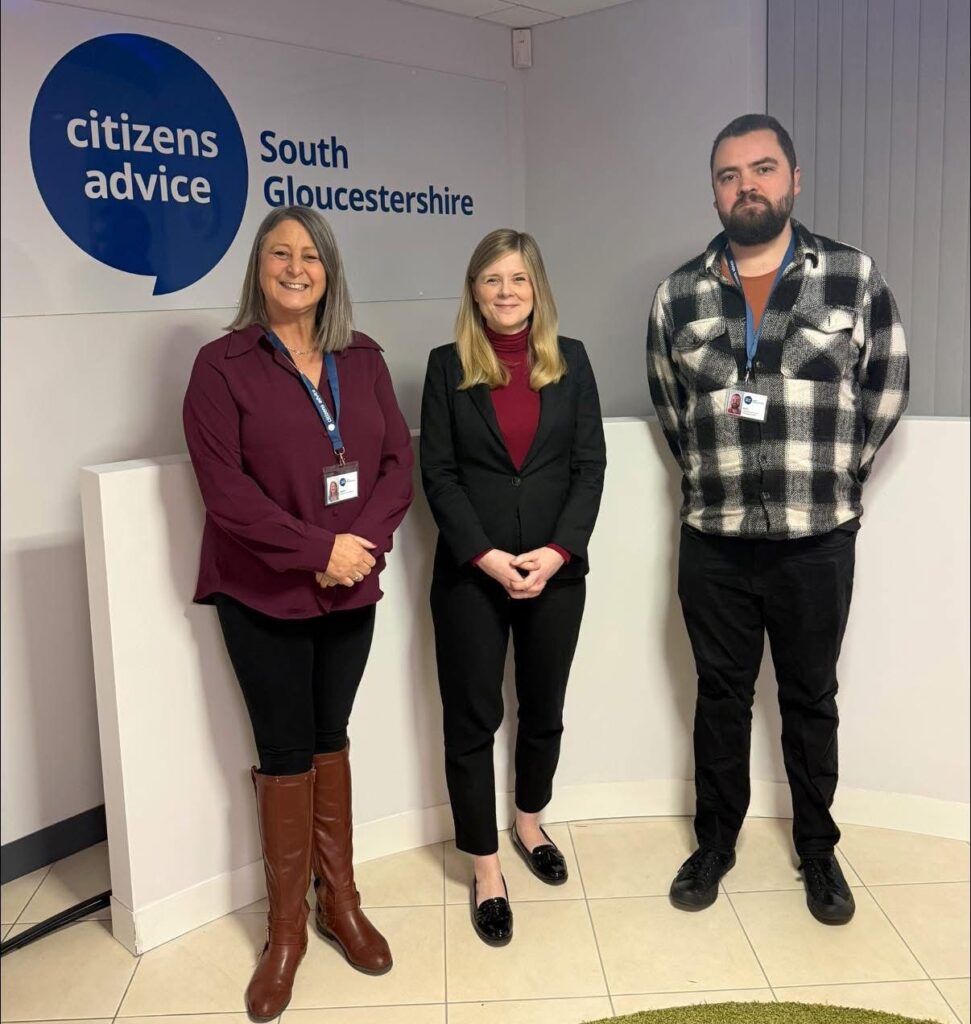 Claire Hazelgrove MP on a visit to Citizens Advice South Gloucestershire's new office to meet the dedicated team.